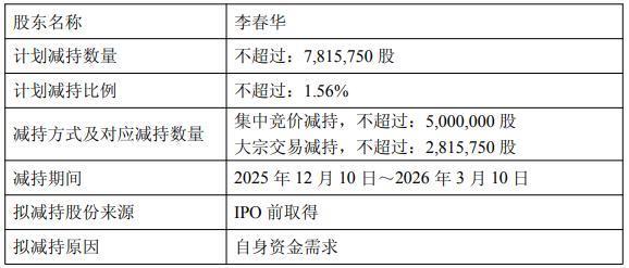 具体情况如下:李春华任意90日内以集中竞价交易方式减持的股份总数不超过5,000,000股,即不超过公司股份总数的1%,以大宗交易方式减持的股份总数不超过2,815,750股,即不超过公司股份总数的0.56%。